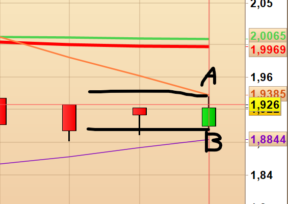 - il corpo della candela deve, però, essere O nella parte superiore O nella parte inferiore della candela stessa (A PRESCINDERE LA CANDELA SIA RIALZISTA O RIBASSISTA) (non deve cioè toccare la metà / centro della candela (per evitare candele con il corpo al centro, di indecisione, ndr) (vd. file “candela da evitare.png”)