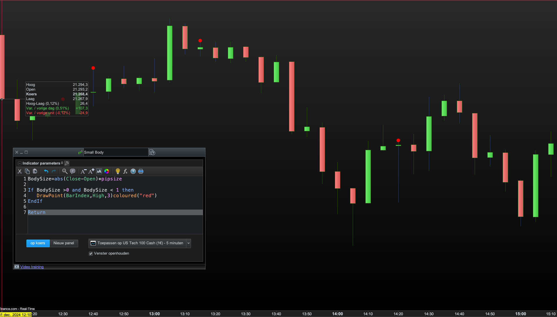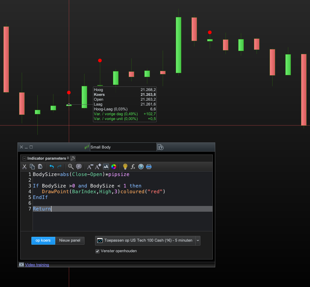i am looking for an indicator that recognizes candels with a body between zero and 1 point.