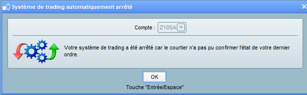 “..system has been stopped because the broker could not confirm the status of the last order “