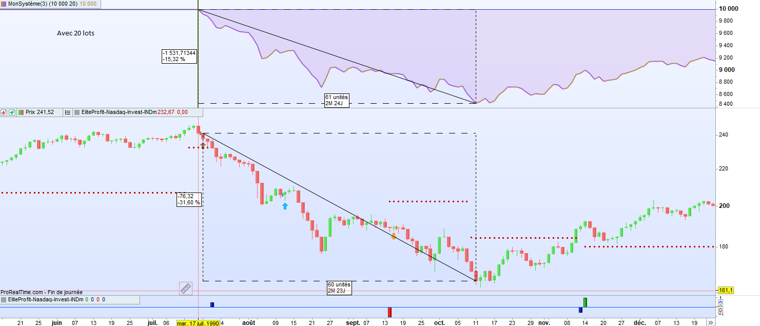 En mettant 20, ça passe, et le capital de la stratégie baisse de 15.3% quand le Nasdaq baisse de 31.6% (cf image).