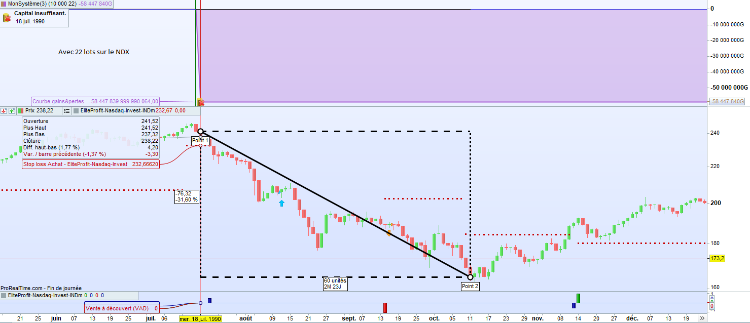 22 lot : capital insuffisant. Il m’affiche dès la première bougie une perte de 58 447 840G 🙁 (cf image)