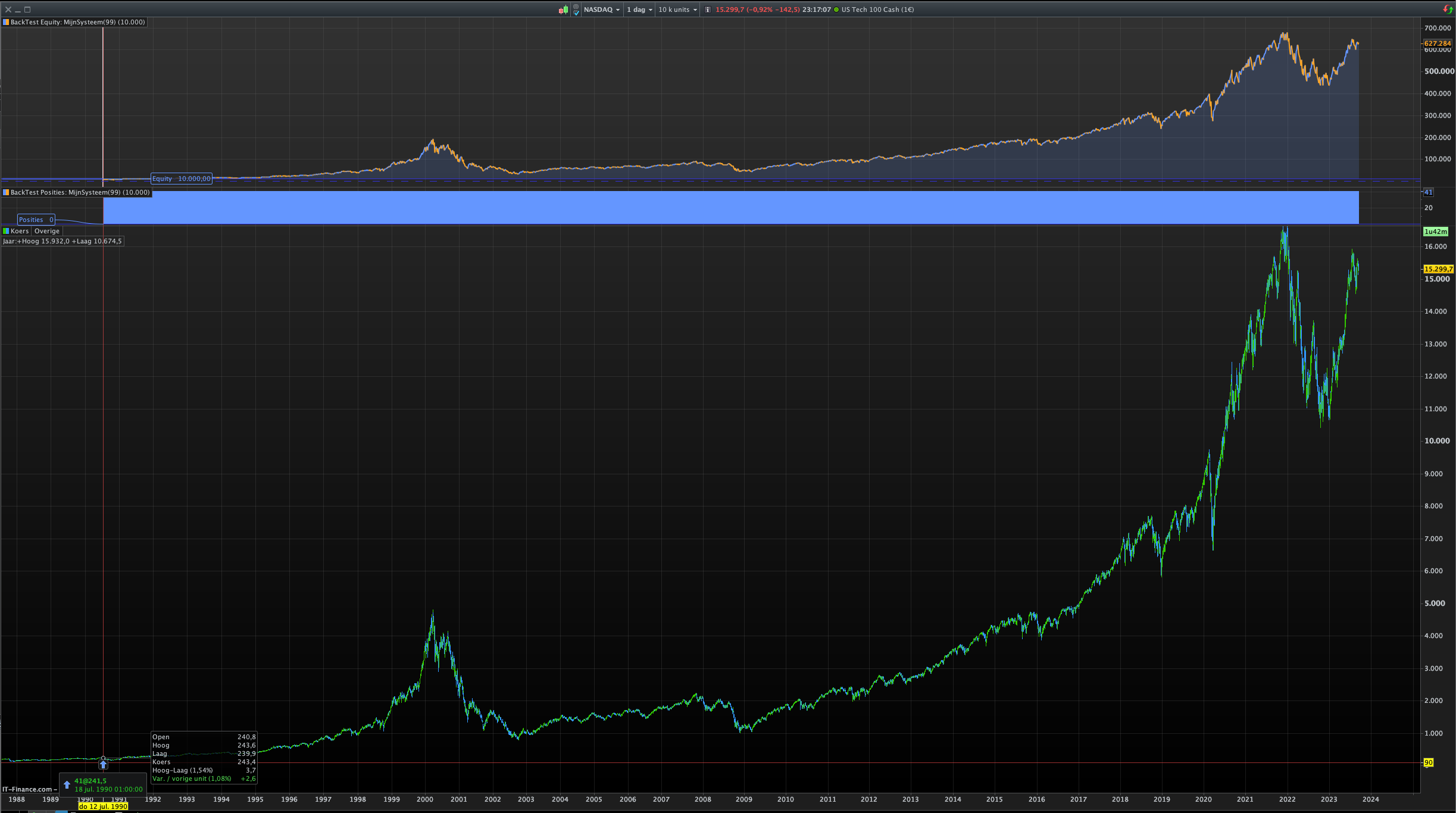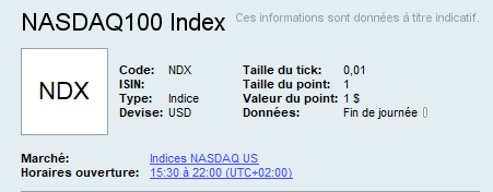 La stratégie est sur le NDX (Nasdaq indice), soit Taille de point : 1 ; valeur du point : 1