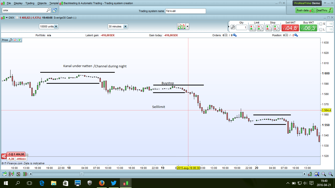 I have tried to write a code that “Catch a move each day with the channel made during night”. It dose that by define a channel each night, and then add some distance to a Buystop and a Sellimit. But I cant get it right, can some please help? 🙂