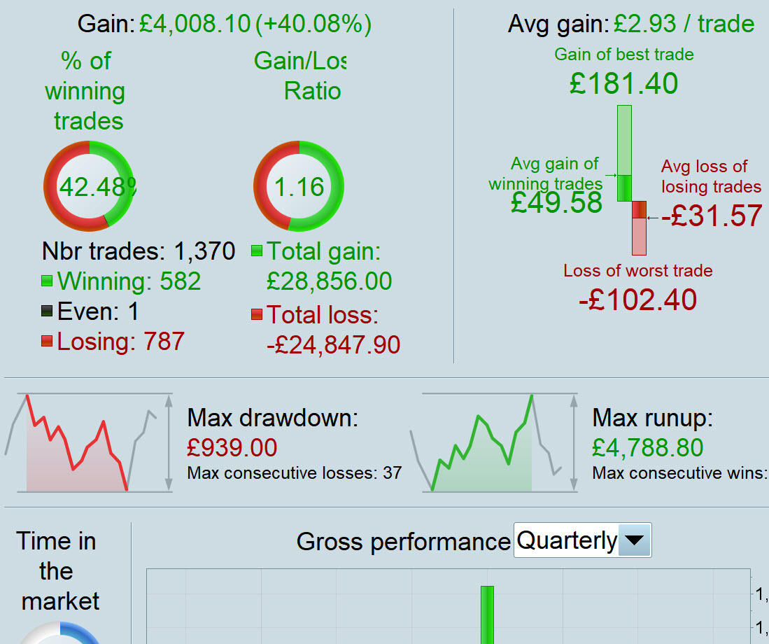 Then after 1 month / 6 months / whenever (depending on System Timeframe) we run the Backtest again and check how the new BT results compare with the old results. A close match will be an indication of consistency of performance and maybe, just maybe translate into consistent Forward Test Results.