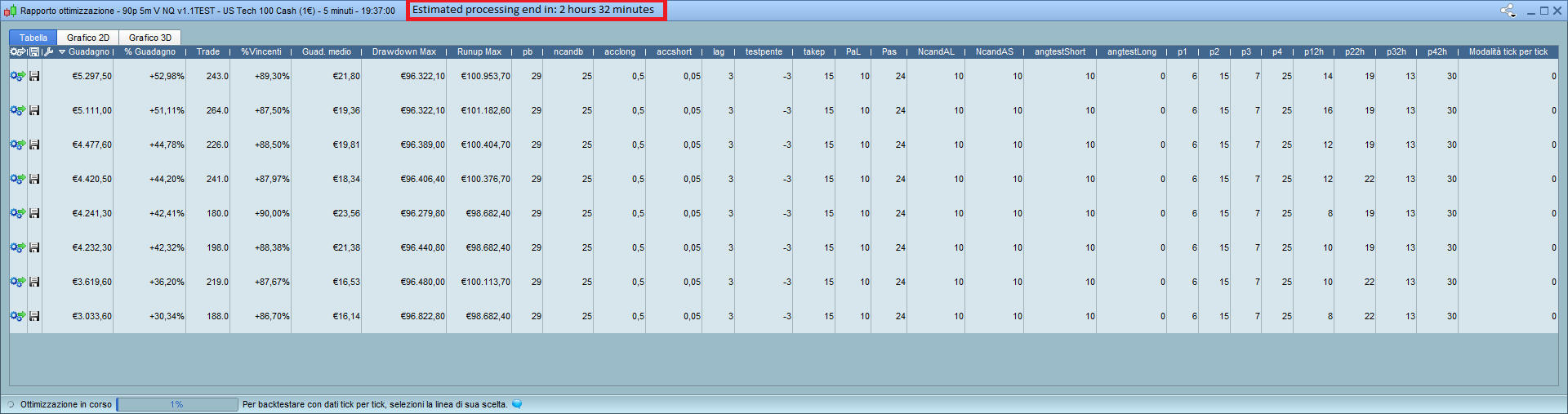 I think it’s quite easy to estimate time to process, except if there is at least one optimized unused variable in the backtest, then the estimate could be very wrong.