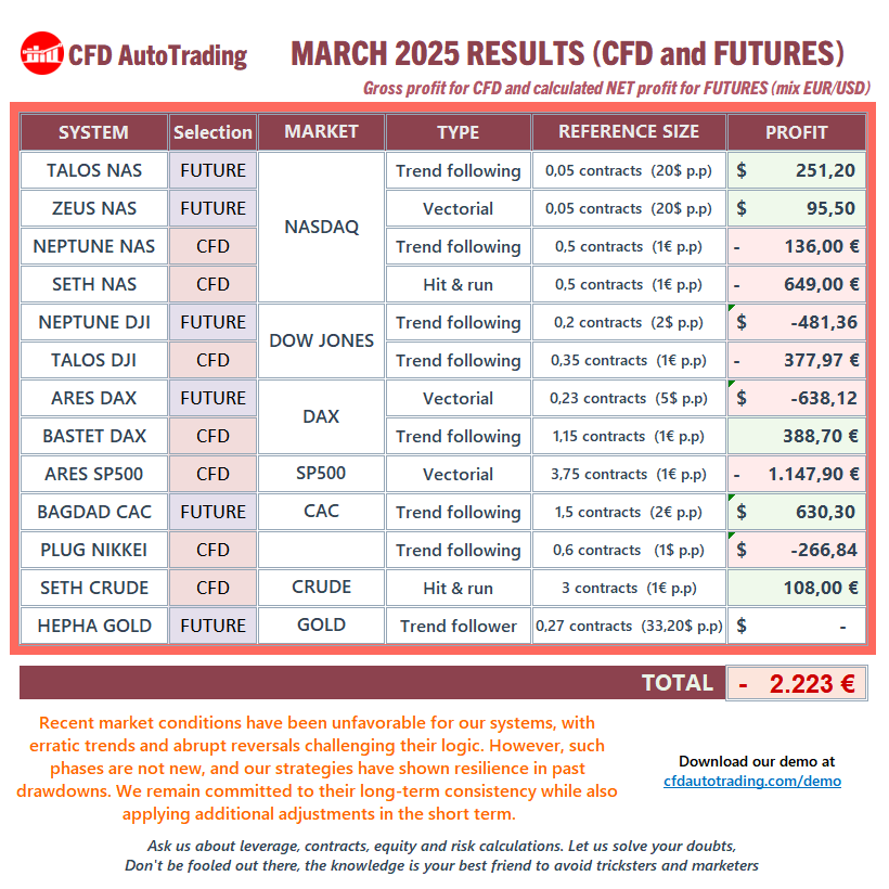 If you’re asking what we have been using lately, until February end, both of them; but without a strict selection process. Essentially, we were running all our existing CFD systems and adding some FUTURES positions as extra and to understand and validate how it works. That said, we recently moved to a near-total risk-off mode in our personal live accounts, also reallocating capital to other investments. My focus now is on preparing a new wave of updates and new trading systems, as I anticipate the next 2–3 years may bring plain or minimal growth (maybe slow but continued downtrend). This doesn’t mean we are abandoning or losing confidence in our current portfolio, but as vendors, we always need to stay one step ahead—and I’ll need available funds to test in live future strategies.