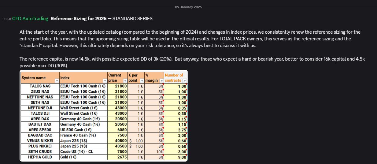 – When we made the sizing proposal with FUTURES, we tried to set sizing equivalent to CFD; and anyway we have tables with the “weights” in each case (because not all instruments have equivalent weight). Not to mention the EUR/USD change, which also changes everything (and now more than months ago)