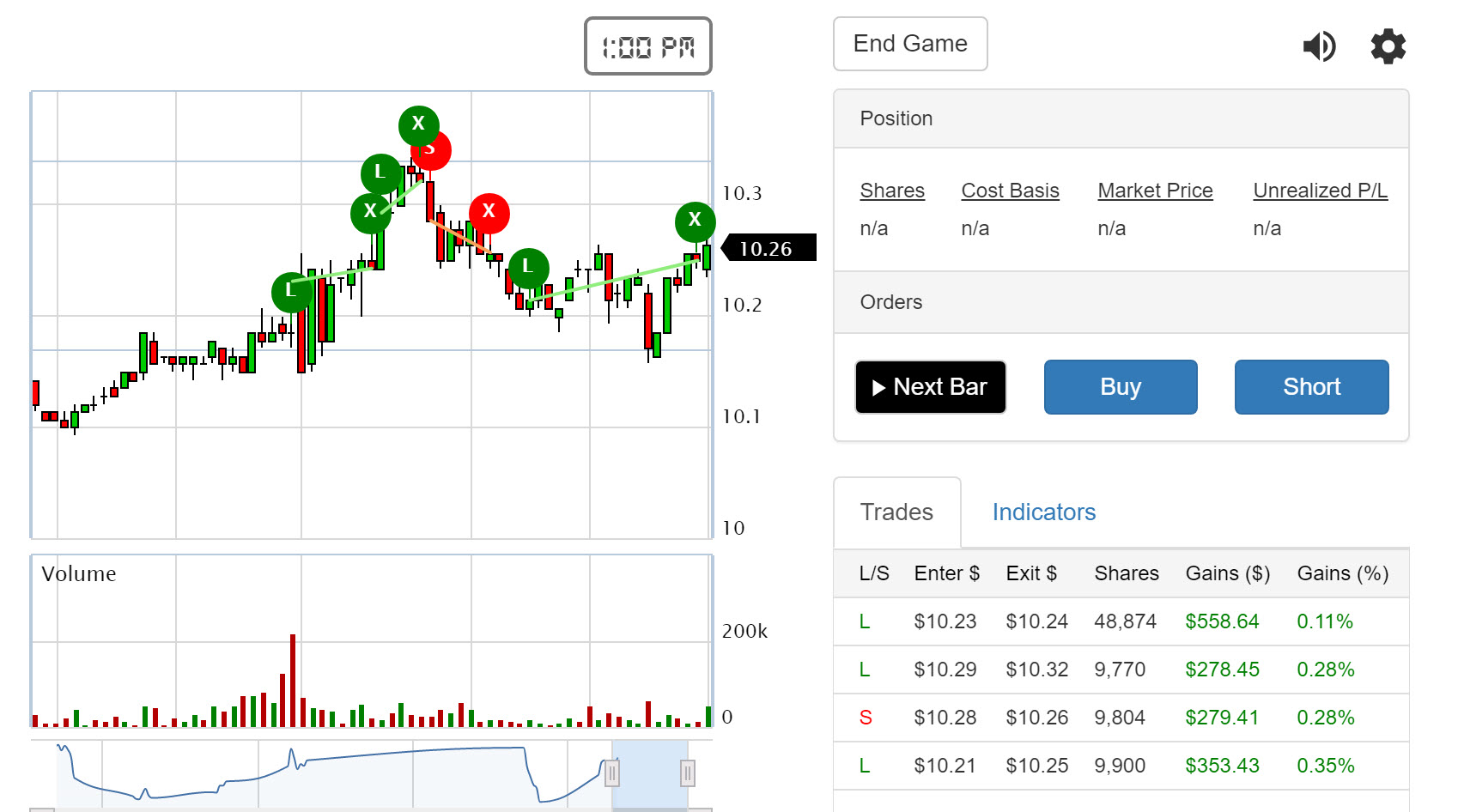 Anybody know of any other similar Trade Simulators where (like chartgame.com ) one click provides the next bar (as opposed to waiting 5 min for a 5 min bar etc)?
