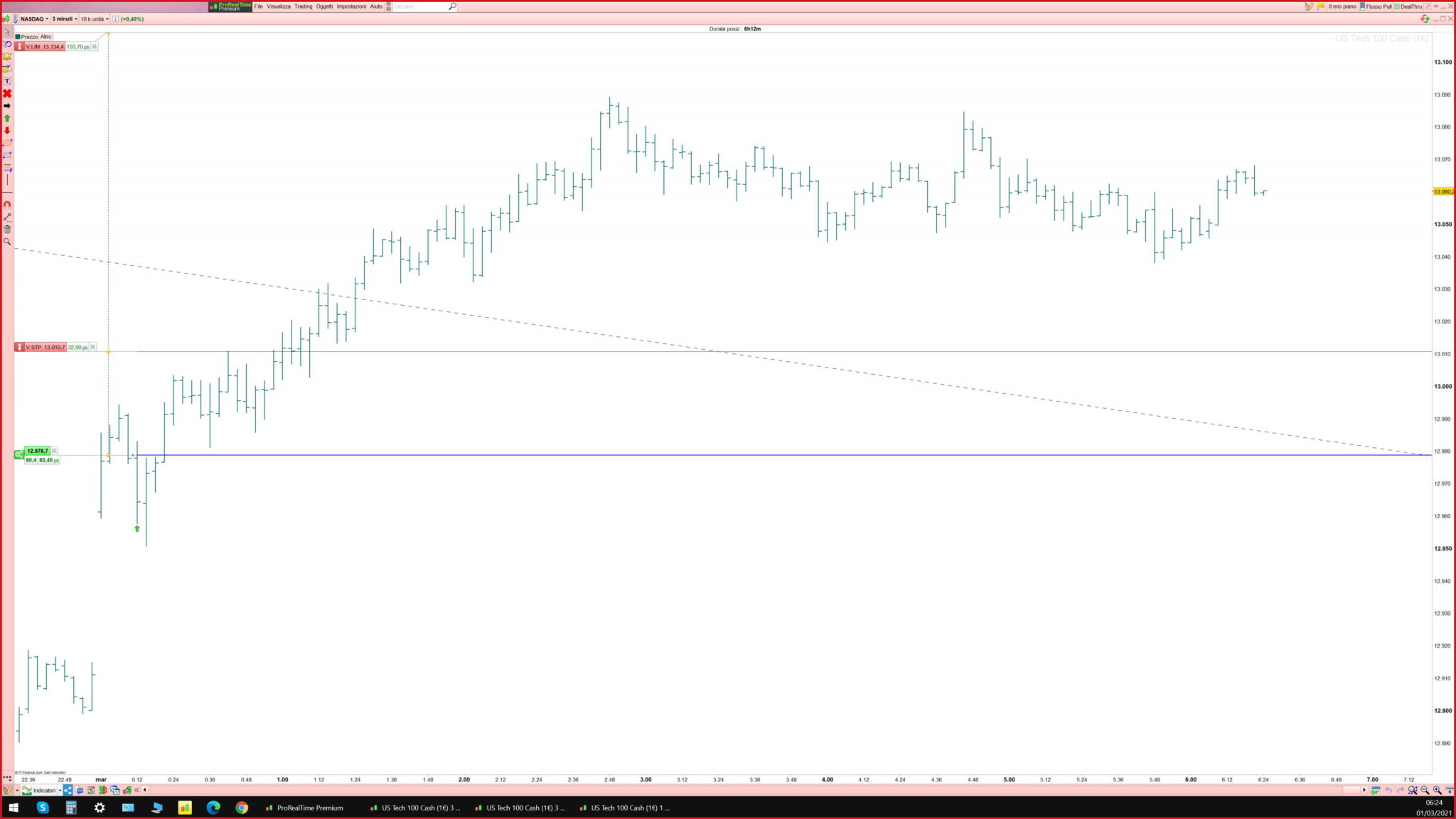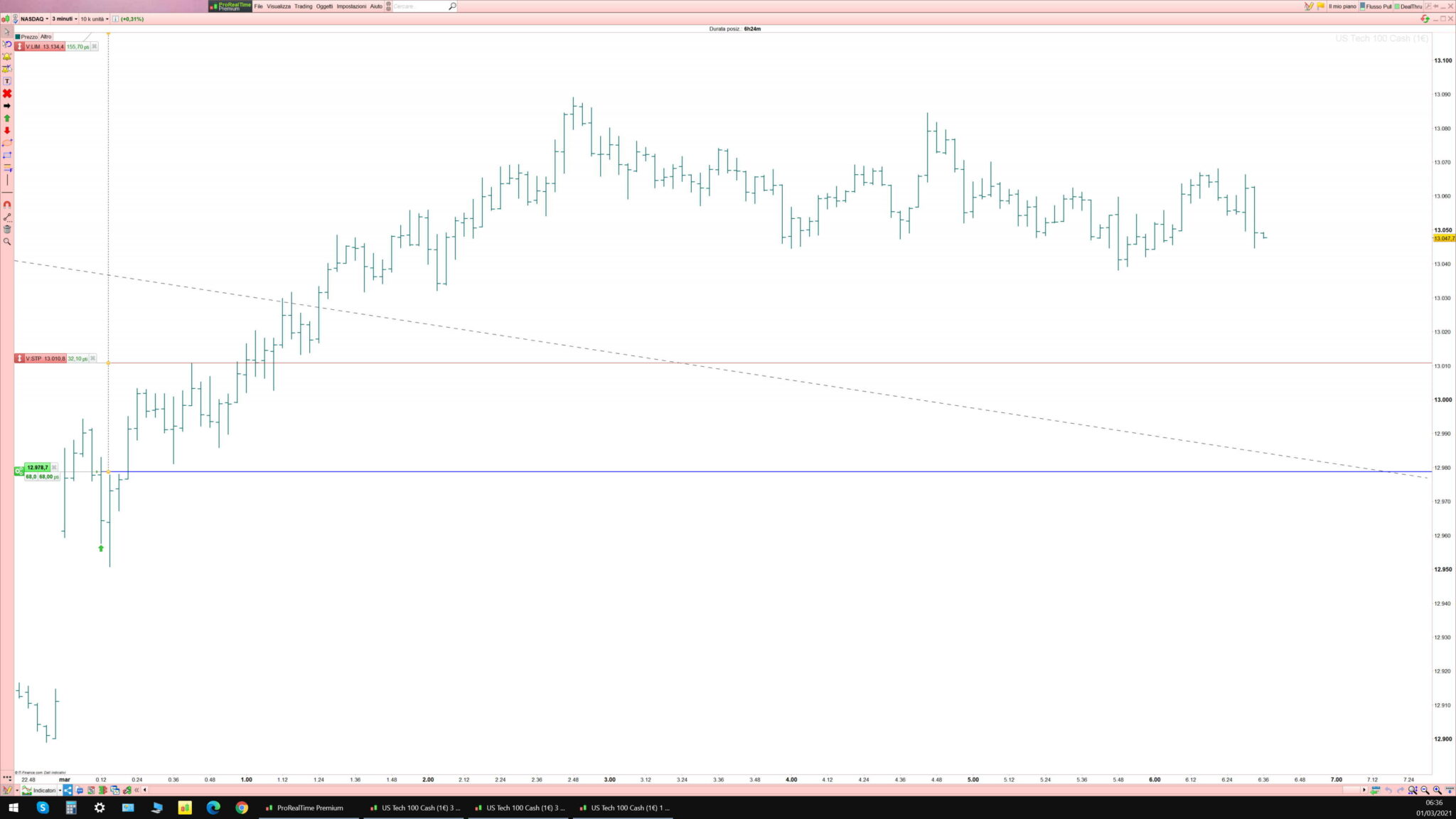 Il TS gira su un timeframe a 3 minuti (ho postato l’orario perchè sono più visibili i livelli del money management).