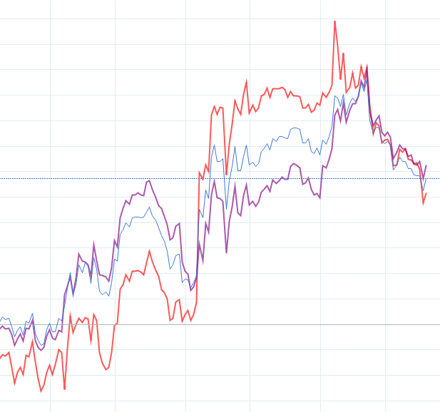 in riferimento al codice sopra , ti allego un esempio di ciò che ho creato manualmente con l’inserimento di medie mobili sui prezzi del 2016 (rossa) ,2017 (blu) ,2018 (giallo) ,2019 (verde).