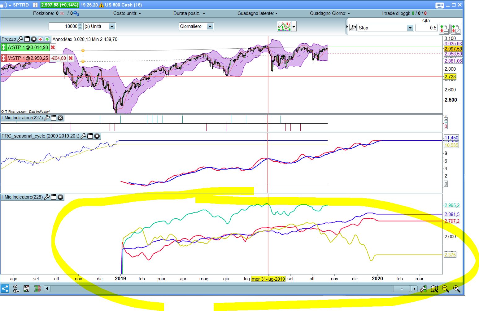 Un’altra cosa, puoi creare un’altra immagine con il cursore fermo nel mezzo dell’indicatore, con data della candela ben visibile, in modo da vedere che valore hanno quelle medie?