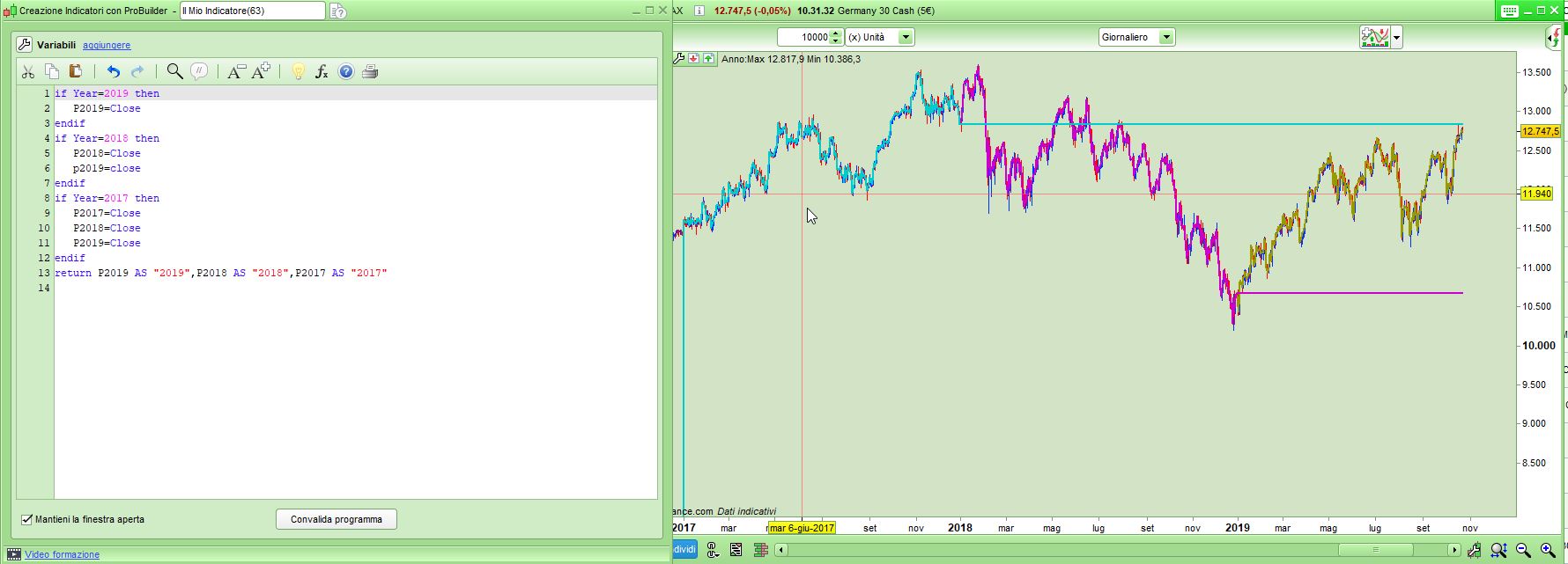 vorrei creare un indicatore che rappresenti la linea della chiusura giornaliera di diversi anni (esempio 2019,2018,2019).