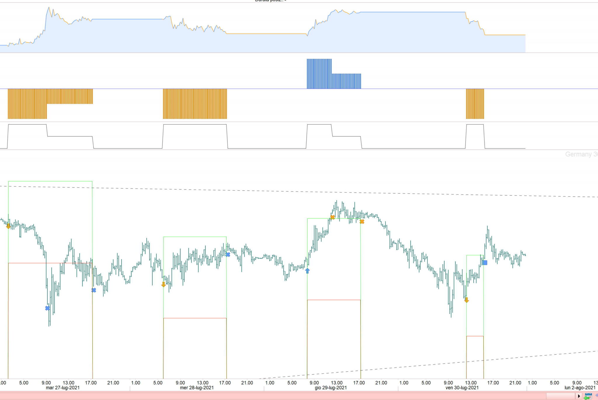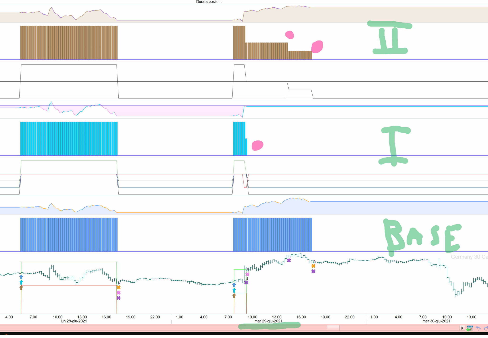 data 29 giugno 2021 (ultima foto sopra nel secondo esempio) ora apertura posizione: 7:45 -TF 15 minuti – Cdf Dax
