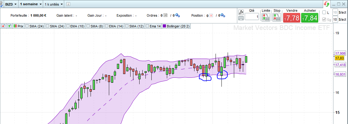 - bande de Bollinger sur 20 périodes, qui pourra être remplacé plus tard par une variable
