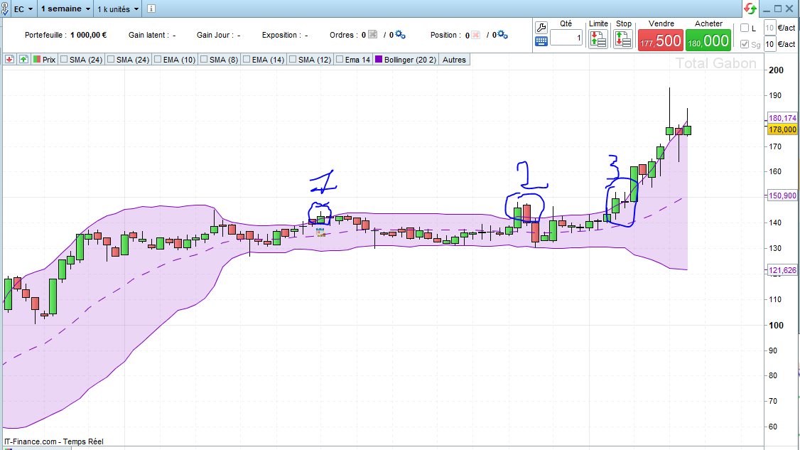 - pour les photos oui c’est une erreur c’est une seule photo elle n’est pas vraiment représentatif mais c’est juste pour expliquer et montrer qu’un prix qui est bloqué entre 2 bandes de bol, après idéalement ça serait de détecter que nous sommes en bande de vol phase 1 (Compression)
