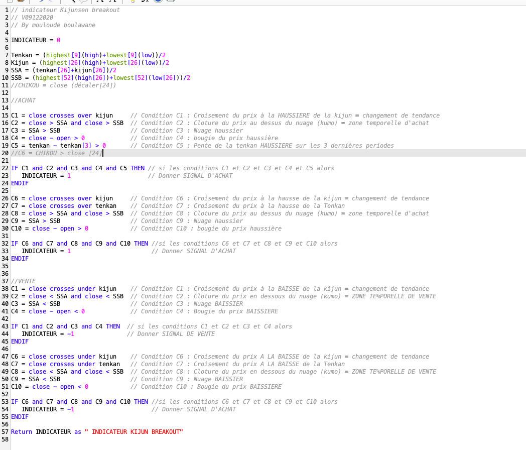 Ma stratégie est basée sur l’Ichimoku mais je n’arrive pas à coder la CHIKOU car je voudrais coder ceci :