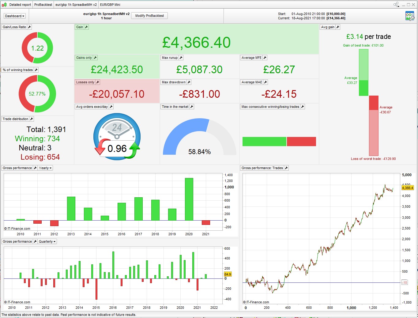 first pic is a 10 year backtest of your algo, second pic is after a quick and dirty revision – % stop and target, trailing stop, refreshed all the numbers.