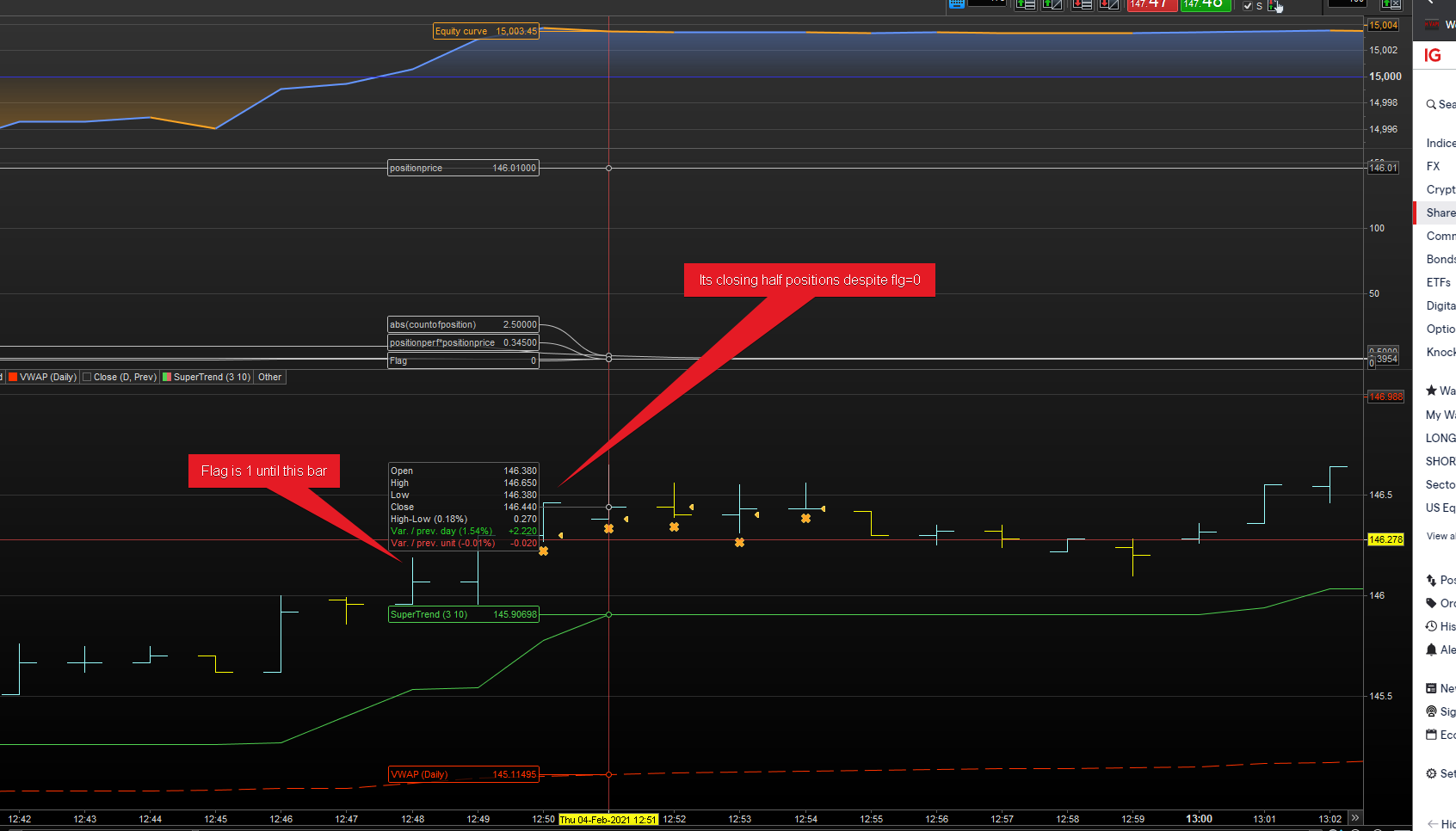The code is closing order despite flag value being zero at the bar the partial close occured