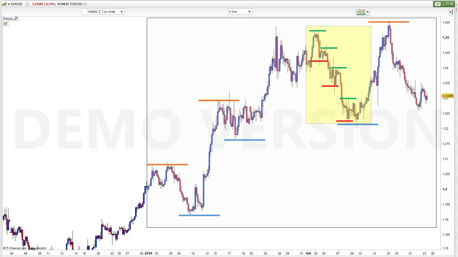 As you can see from the attached screenshot of Eur/Usd, h4, different scenarios often happens within the same chart.