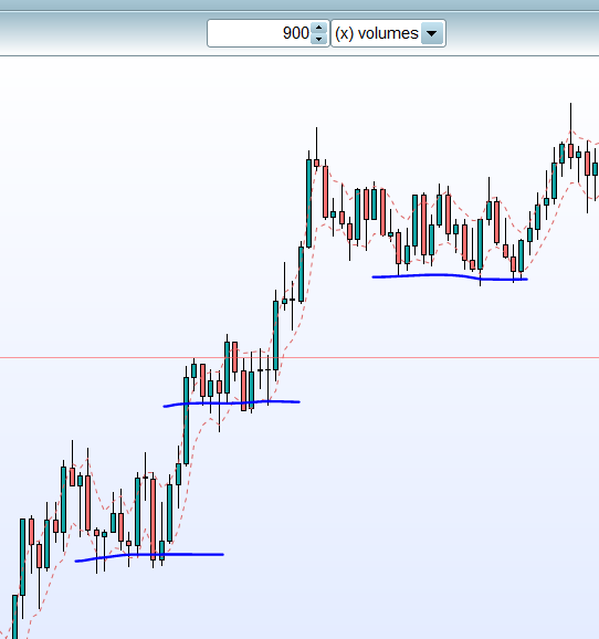on a volume chart I want place orders as per the screen shot, Screen shot is 5432 volume chart on dow.