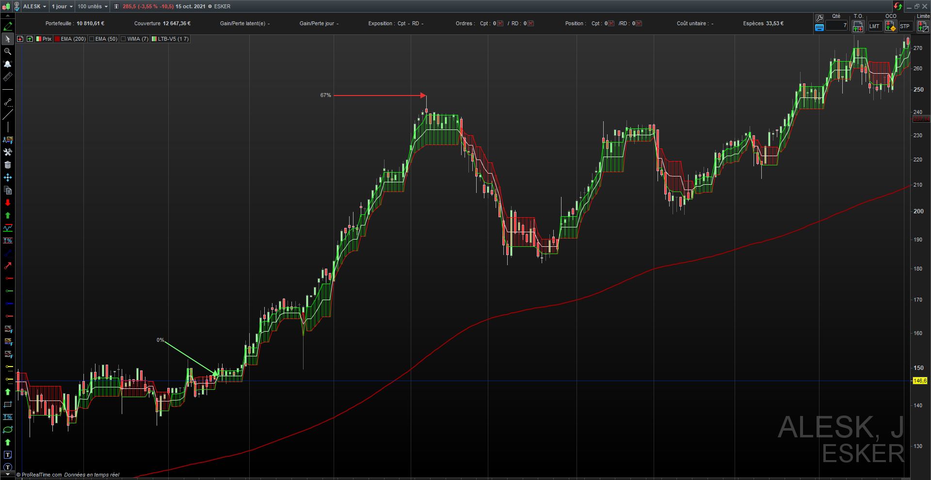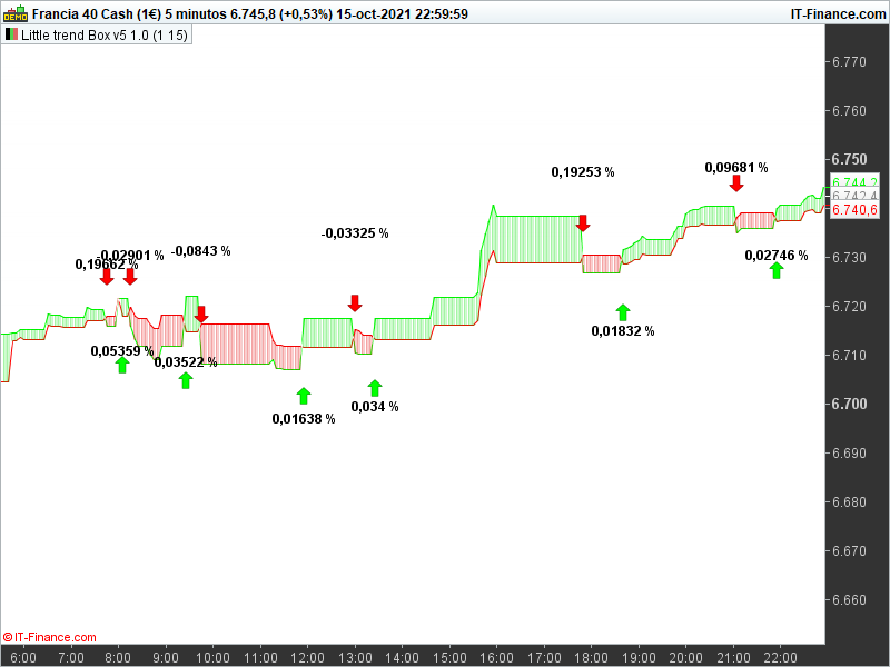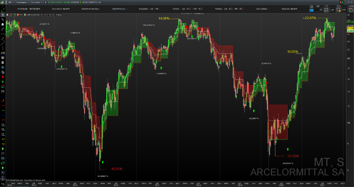 Le départ serais le croisement de la ligne verte sur la ligne rouge pour la hausse avec une arrivée sur le +haut puis la valeur négative pour le déclin inversement pour le déclin, avec un croisement ligne verte ligne rouge et le plus bas .