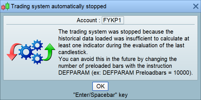 It appears that the problem is not DEFPARAM. Check what kind of indicators you re using and how many bars they require (a 5000-period Ema could exceed 10K bars for calculations).
