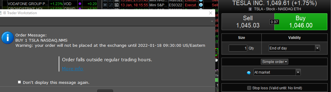 I can’t even test it with Tesla today because today all USA stocks are closed – also pre-market. Haha.