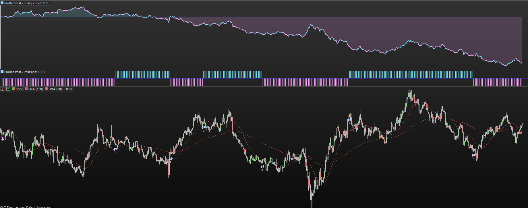 Hey! I have written so much more advanced things than this so it is pretty embarrassing to write this, but part of my big code didn’t act like I wanted it and when I wrote out a sample and it still didn’t work, it is just a normal MA crossover. The buy and sell don’t appear where they are supposed to.