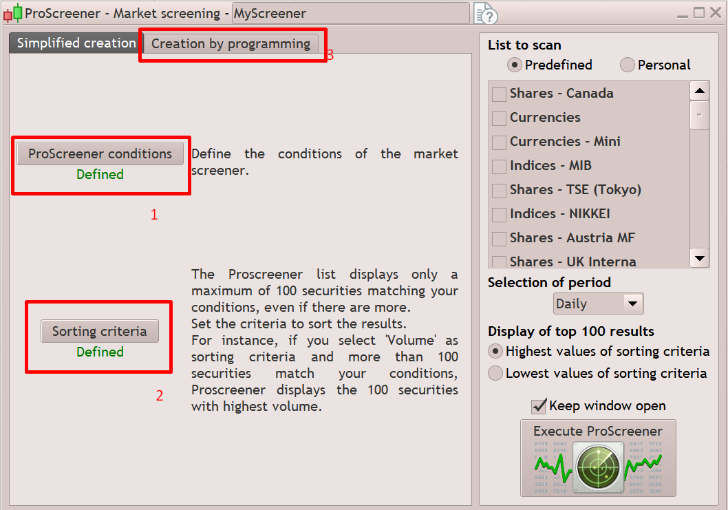Donc c’est normal que le screener retourne toutes les valeurs de la liste, puisqu’il n’a aucune condition à tester dans son code 🙂 Je pense que tu n’a pas été au bout de la démarche de la programmation assistée.