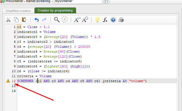 SCREENER [c2 AND c3 AND c4 AND c5 AND c6] (criteria AS "volume")