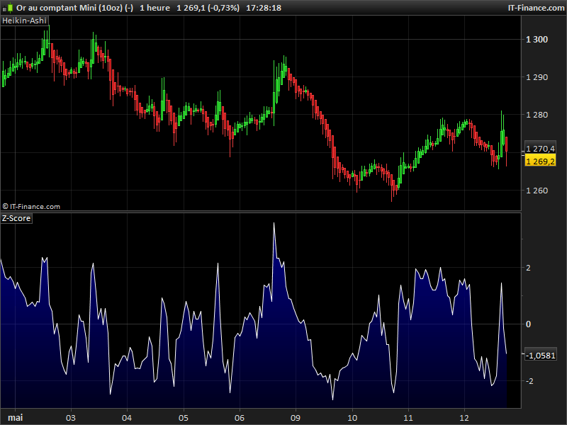 The formula is: (Close – Average close to n periods) / Standard Deviation to n periods.