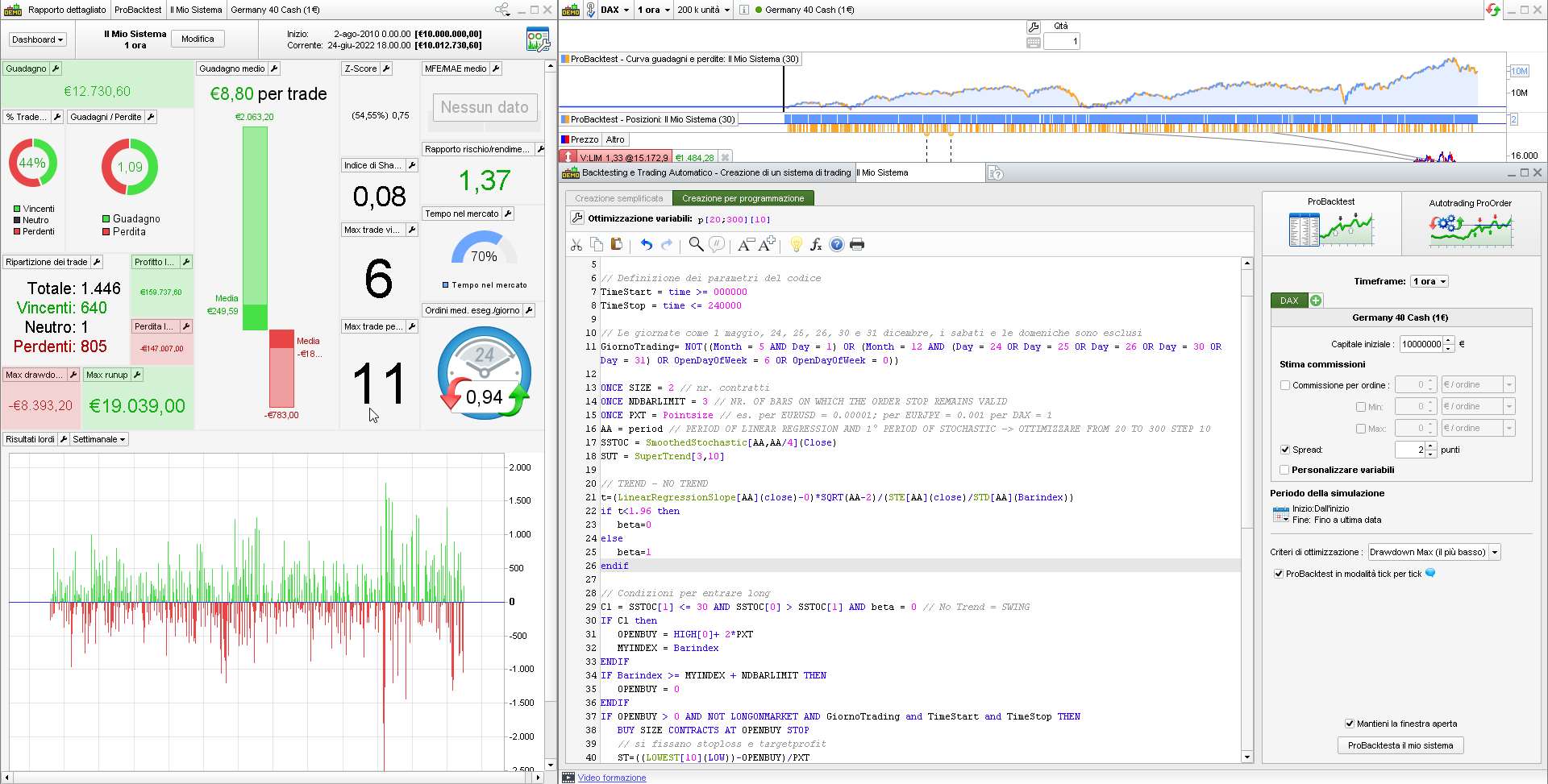 Ottimizzando le variabili, non ottengo risultati, comunque sottostante Dax tf 1 ora.