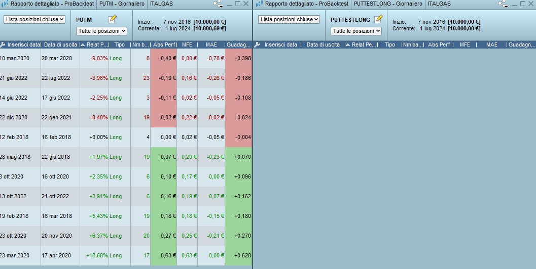allego screenshot con il confronto dei due ts, sul vecchio entra su calo quotazioni, mentre con il nuovo codice non entra a mercato