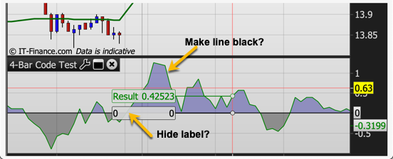Thank you so much for your coding help. Two things: (1) is there a way I can get the momentum line to be black; and (2) is there a way I can have the zero line label not show?