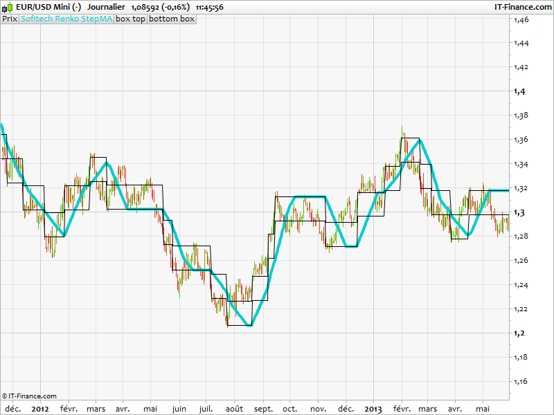 First, you’ll have to adapt the renko indicator with a new variable that deal with what is the current close. Because indicators are often calculated on Close, my renko box indicator does not have one.