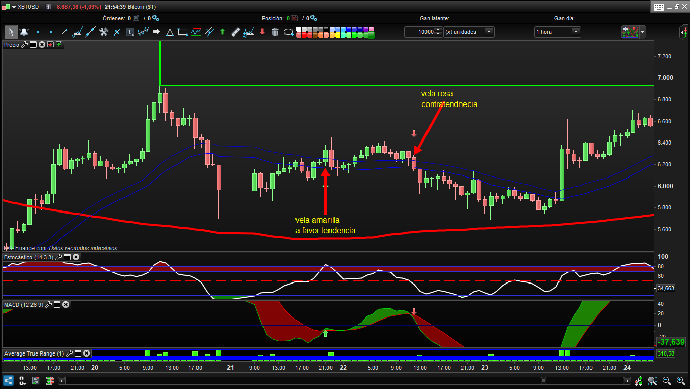 Buenas tardes a quien le pueda interesar …partiendo de dos wma 34 una al close y otra al low valor 34…. y una mm200…a ver que posibilidad hay de lo siguiente…cuando vamos a favor de la tendencia precio por encima de la mm200 y tendencia bajista precio por debajo de la mm200..partiendo de esa premisa y de esas tres medias, quiero que ..cuando estemos en tendencia bajista..contratendencia..se marque la vela que cumpla estas condiciones A)…1..se produzca un cruce alcista del macd 2 ..que la vela que produce el cruce macd..se quede dentro de la wma low 34..si hay cruce macd y la vela que lo produce se queda por encima de la wma 34 low al cierre marcarse de color ..ejemplo..amarillo…AA) de igual forma en tendencia alcista y se produce un cruce macd bajista y la vela que produce el cruce se queda por debajo de la wma34 CLOSE… se coloree de cualquier color..rosa..por ejemplo…en bajista la LOW en alcista la CLOSE y segundo panorama..B) en tendencia alcista..se produce cruce macd alcista..y la vela que produce ese cruce si se queda por encima al cierre de la wma34 LOW..que se coloree de color amarillo…al igual en tendencia bajista BB) tendencia bajista, curce macd bajista y la vela que lo produce debe quedarse por debajo de la wma34 c CLOSE..si hya confusión puedo escenificar con imagen..muchas gracias a quien le pueda interesar.
