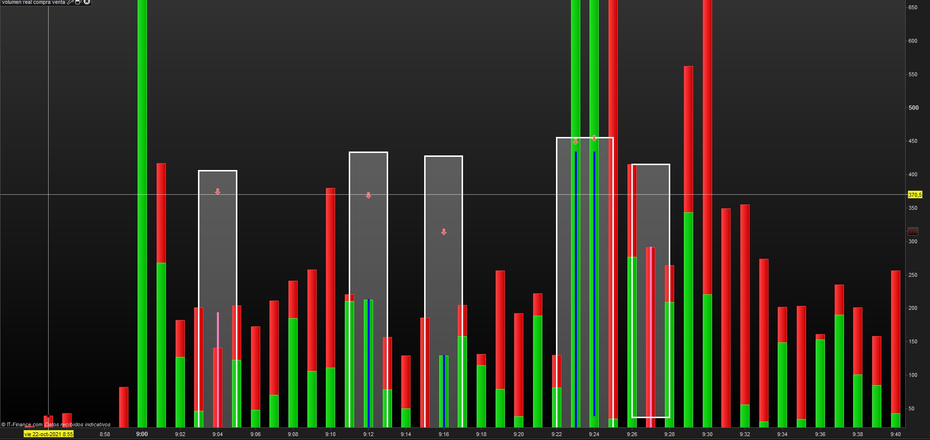Buenos dias, que posibilidad hay de que cuando se podruzca una vela de volumen completo tanto alcista como bajista que el color sea diferente al verde y rojo, por ejemplo azul vela alcista total y rosa vela bajista total conservando las demas velas con volumen mixto a su color que marque, aqui os dejo el codigo.