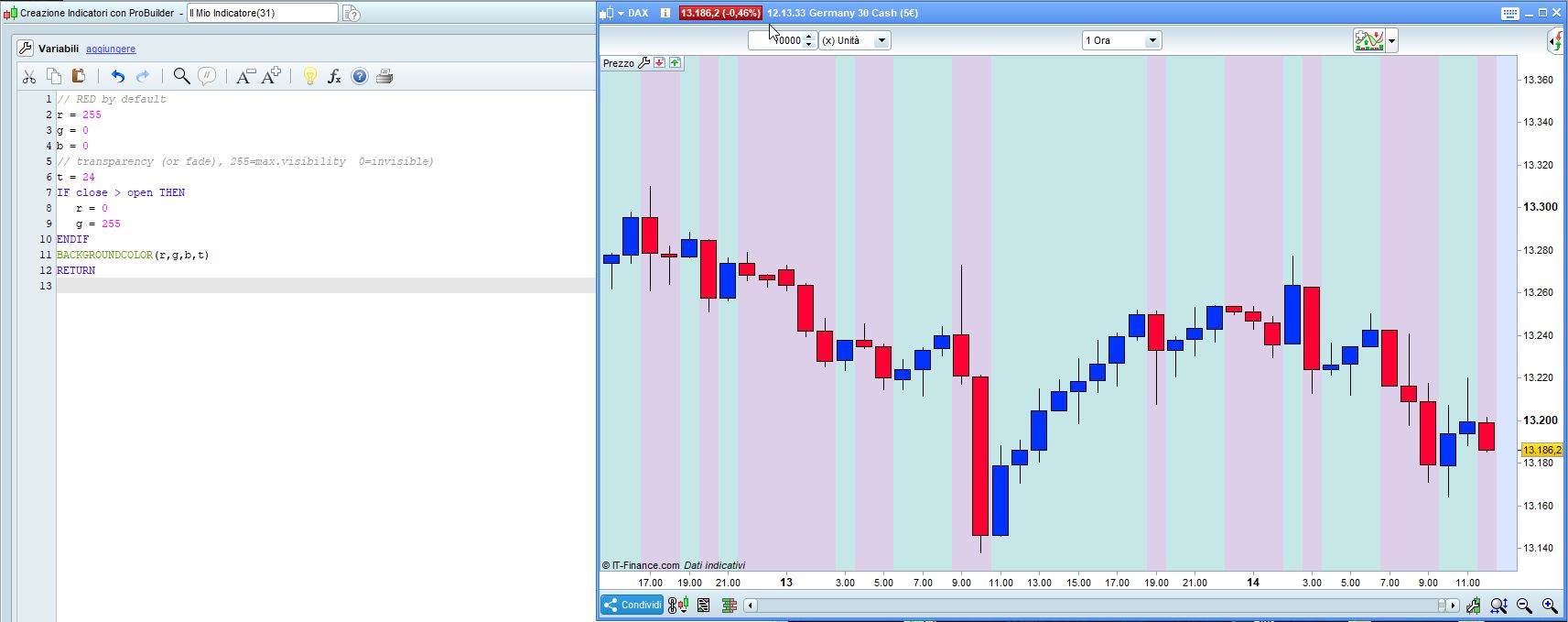 IF close > open THEN //change color to GREEN when it's Bullish
