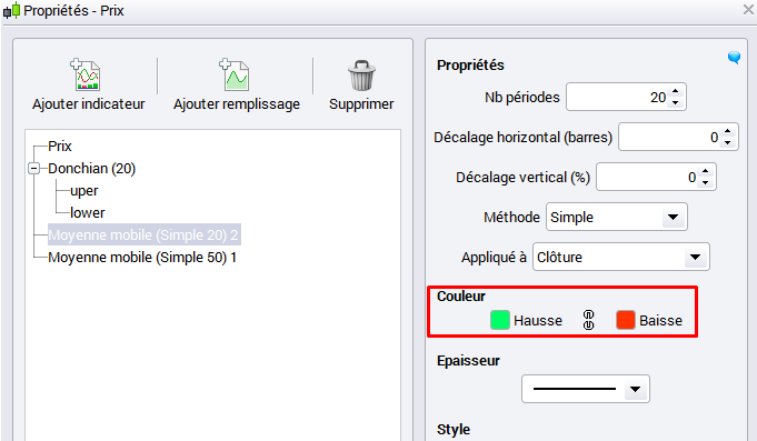 Il faut bien comprendre l’instruction “coloured by” qui ne peut avoir que 2 conditions : soit 1 ou -1 (ou alors au dessus ou en dessous de 0). Si c’est supérieur à 0, alors la couleur de cette variable sera fonction de la couleur que tu choisiras pour “Hausse” dans la fenêtre de paramétrage et inversement quand c’est inférieur à 0.