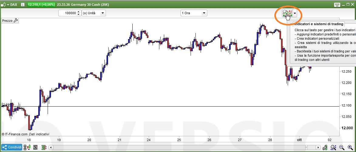 - nella finestra che si apre clicca nella parte sinistra su “indicatori”