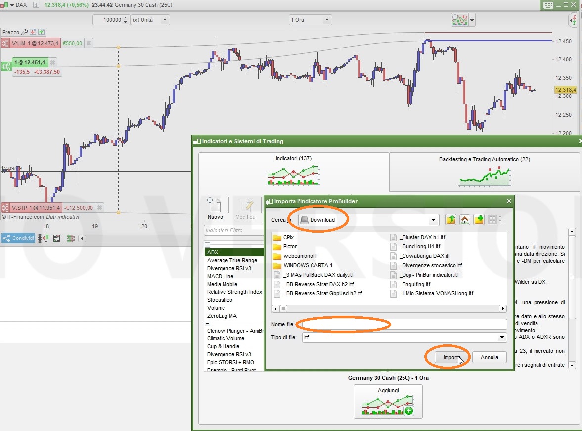 a questo punto il tuo indicatore è stato importato ed aggiunto alla libreria di ProBuilder (tra gli indicatori personalizzati, o custom) e potrai caricarlo tutte le volte che vorrai.