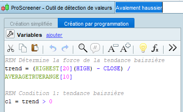 🙄 je pense qu’il y a une bêtise dans la description, en fait dans les 2 screeners tu remarqueras que la condition est la même: trend>0 ; cette condition existe uniquement pour vérifier que le calcul s’est bien effectué et non null
