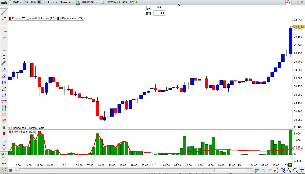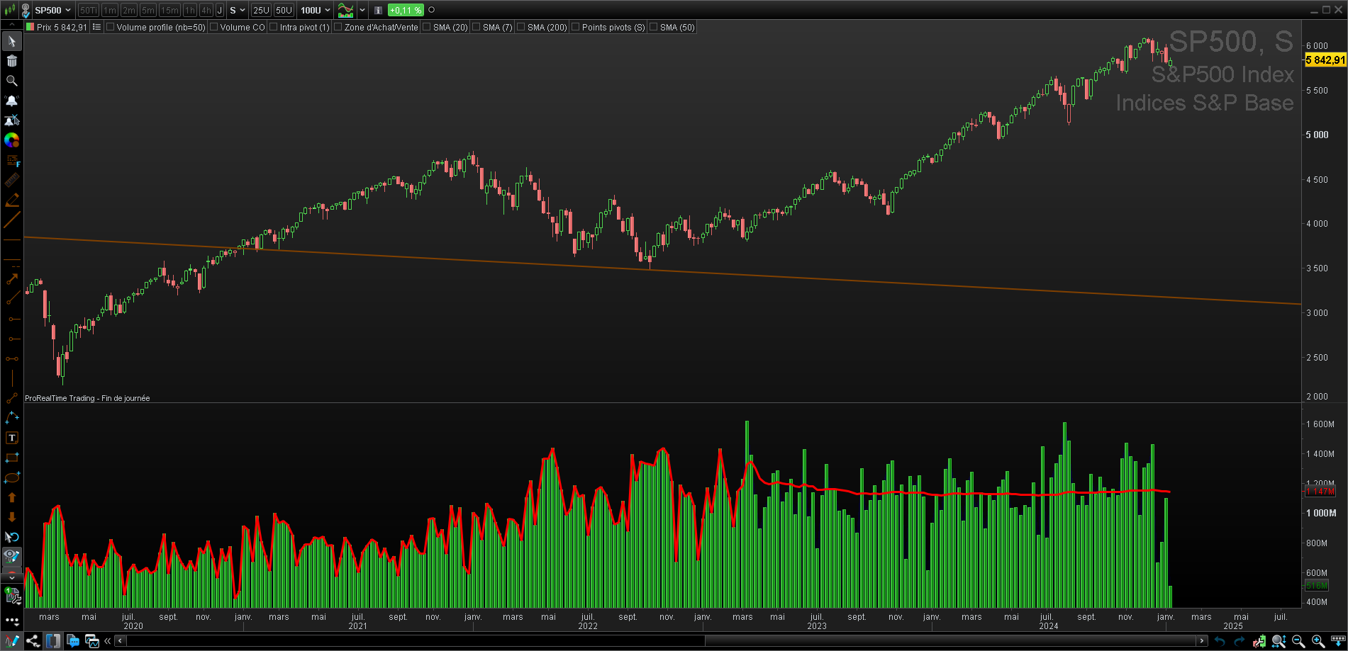 avec p=barindex-500, p ne sera égal à au moins 1 qu’à la 501 barre, donc jusqu’à la 500e, la période max(1,p) reste égale à 1 et donc la moyenne sur 1 seule barre épouse le volume (pas le prix), le code a fait ce qui lui a été demandé sans bug, c’est sur la définition de ce qui lui est demandé qu’il faut donc se pencher : vouloir afficher à partir de la 500e, mais que ça marche aussi avant la 500 en définissant ce que pourrait être cette moyenne avant la 500e barre: