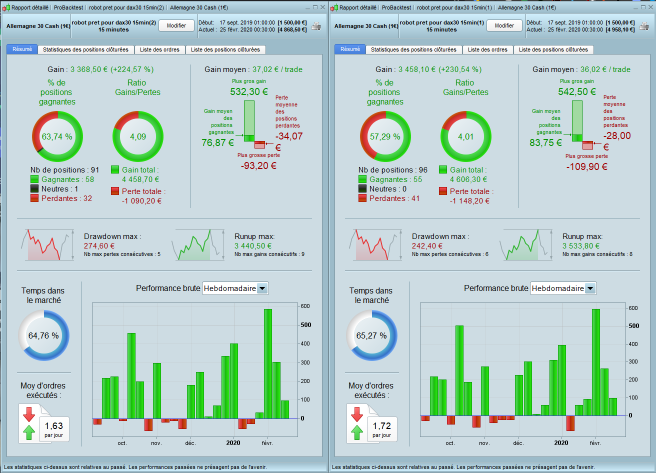 Les différences de résultat sont obtenues à cause de paramètres différents pour le même algo ? Il ne s’agit pas de 2 robots de trading différents ?