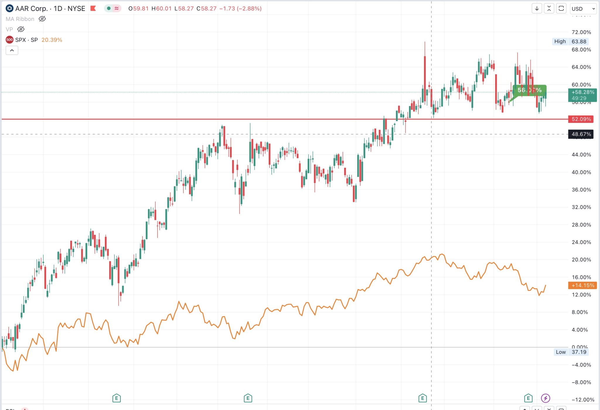 is there a way to compare on the same chart 2 stocks/indexes ? I’m trying to replicate what I can do in trading view where I compare a stock to SP500 index. See the example in the attachment.