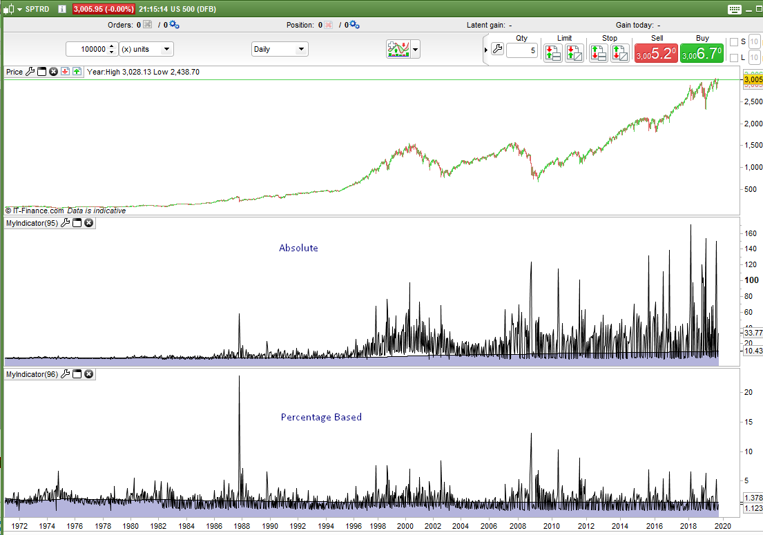 2. Did you take the absolut range or percentage range because the absolut range is changing a lot over the years. Absolut range would distort the result in my view as Indices prices increases significantly over the years.