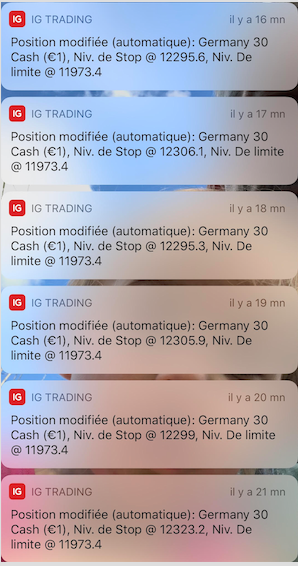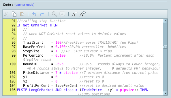 Bonjour, j’ai un petit souci sur un algo et je ne comprends pas . c’est sur le stop win, qui est prévue à 100 points. il se met bien en clôture( algo en m1) seulement si sur exemple d’une vente le prix baisse le stop s’adapte toutes les minutes, MAIS, si le prix remonte, le stop remonte aussi. il arrive même qu’il se replace au stop d’origine, après le 1 er BE, si les prix remonte soit a moins de 100 points, je me retrouve avec un trade non protéger. j’aimerait juste comprendre mon erreur. Merci