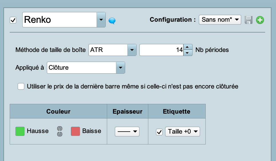 Comme la valeur de l’ATR varie dans le temps, pensez à mettre à jour régulièrement la taille des briques Renko.