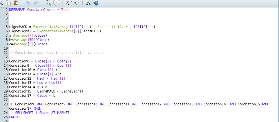 Bonjour, comme je le disais dans la file dédiée aux presentations, je suis nouveau ici et je souhaiterais coder une stratégie mais n’ayant aucune connaissance en programmation, je butte déjà sur un problème.