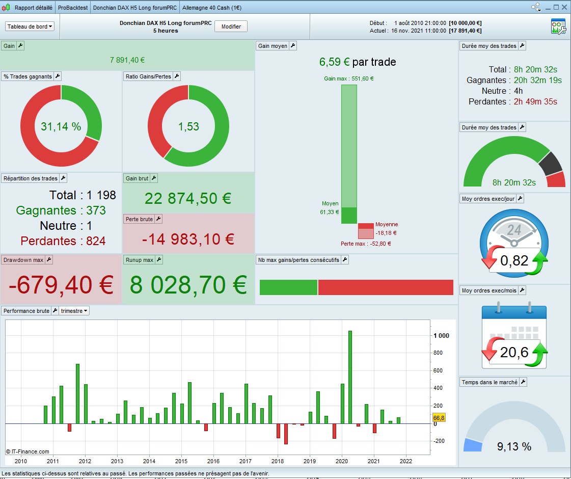 Le compteur des positions ouvertes est à 1200 (la dernière étant clôturée, le total des trades du rapport détaillé est aussi 1200, si la dernière ne l’avait pas été, le rapport détaillé aurait mis 1199 ; c’est ce que j’avais pu observer dans un précédent test).